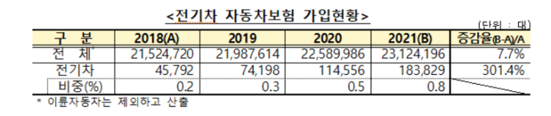 최근 전기차 시장의 성장으로 자동차 보험에 가입한 전기차의 숫자가 4배 이상 급증한 것으로 밝혀졌습니다. 운전자 보험은 선택이지만 자동차 보험은 필수이니 만큼, 전기차를 선택한 운전자의 수가배 이상 늘어났다는 뜻이기도 합니다. 비록 총 자동차 수가 2000만 대라서, 아직까지도 전기차의 비중이 전체 시장에서 그렇게 크지는 않지만, 증감비율이 300%에 이르는 만큼, 점점 늘어나고 있는 것도 사실입니다.