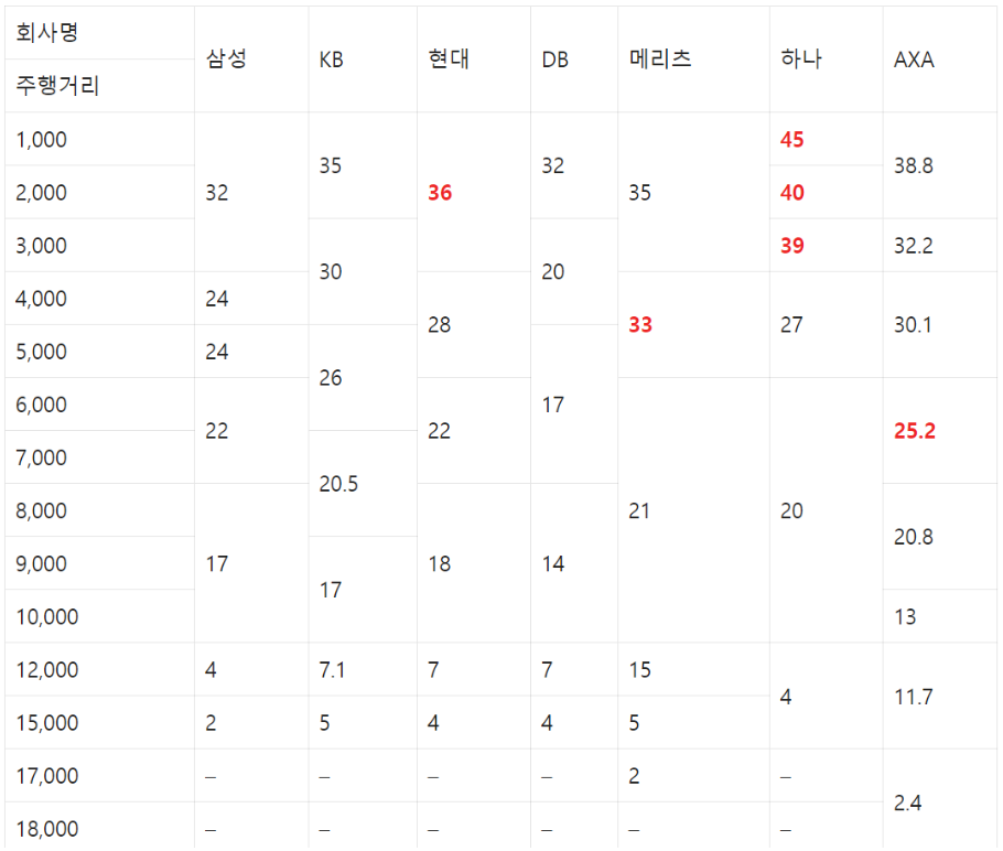 - ① 마일리지 선 할인특약 50% 할인 (연간 1천km 이하 약정 시, 차량 2대 이상 보유 시)